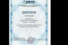 Поздравляем победителей и призеров онлайн-этапа олимпиады «Физтех – 2014», проведенной Московским физико-техническим институтом (МФТИ):