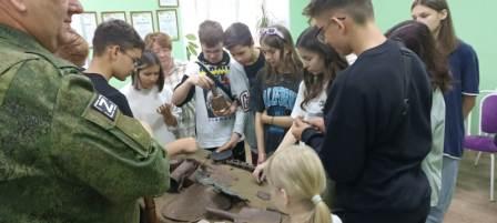 Ребята узнали о деятельности поискового отряда "Ветеран", который занимается поиском пропавших солдат и их дальнейшим захоронением. Опознание происходит по личным вещам солдат, по смертным медальонам.