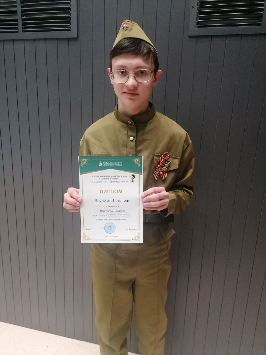 Ученик 9 класса МАОУ “Лицей №2” Шигапов Рамазан с исполнением стихотворения М.Джалиля “Ышанма”/ “Не верь” на татарском языке стал лауреатом 1 степени в направлении “Литературное” в номинации “Патриотические произведения”. Победителям вручили памятные подарки и дипломы. Поздравляем Рамазана с победой на конкурсе и пожелаем ему дальнейших успехов в учебе и в творчестве!