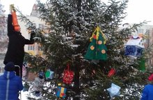 Учащиеся и родители лицея, под руководством классных руководителей изготовили новогодние украшения для школьного двора, которые старшеклассники развесили на елях и пихтах.
