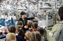 30 ноября учащиеся 1В класса посетили чулочно-носочную фабрику «Алсу». Они узнали этапы подготовки пряжи увидели ,как заправляют автоматы для вязания носков и перчаток, как проходит процесс вязания, как сырьё получает товарный вид и попадает на прилавки магазинов. Сотрудники фабрики провели интересную экскурсию, после которой все ребята ушли с подарками. А в конце посетили столовую «Просто вкусно»: попили вкусный компот с пушистыми булочками! Все остались довольны!