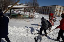Тимуровцы 4А класса продолжают помогать ДОУ №51 «Радуга». В солнечный весенний день они занялись расчисткой снега на территории садика. И прогулка и полезное дело сделали.