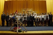 Слова М. Пляцковского, музыка Ю.Чичкова «Дружат дети на планете» - сводный хор 6-х классов (учащиеся 1А класса танцевали на сцене)