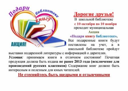В Лицее проводится Акция «Подари библиотеке книгу»