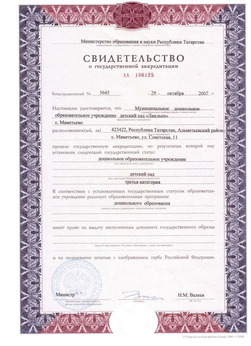 Муниципальное бюджетное дошкольное образовательное учреждение «Детский сад «Ландыш» с.Маметьево» / Мәмәт авылы муниципаль бюджет мәктәпкәчә белем бирү учреждениесе «Ландыш» балалар бакчасы»