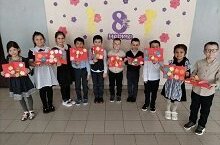 Советник директора Сахапова Л.Г. организовала фотозону. Обучающиеся младших классов сделали поздравительные открытки.