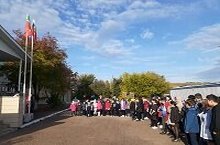 В МБОУ "Миннибаевская СОШ" каждый понедельник начинается с поднятия флага и исполнения гимна.
