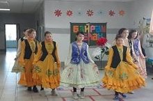 1 октябрь Өлкәннәр көне уңаеннан 4 сыйныф укучылары мәктәпнең өлкән яшьтәге укытучыларын бәйрәм белән тәбрикләделәр.Аларга җыр,бию,нәфис сүз тәкъдим иттеләр.