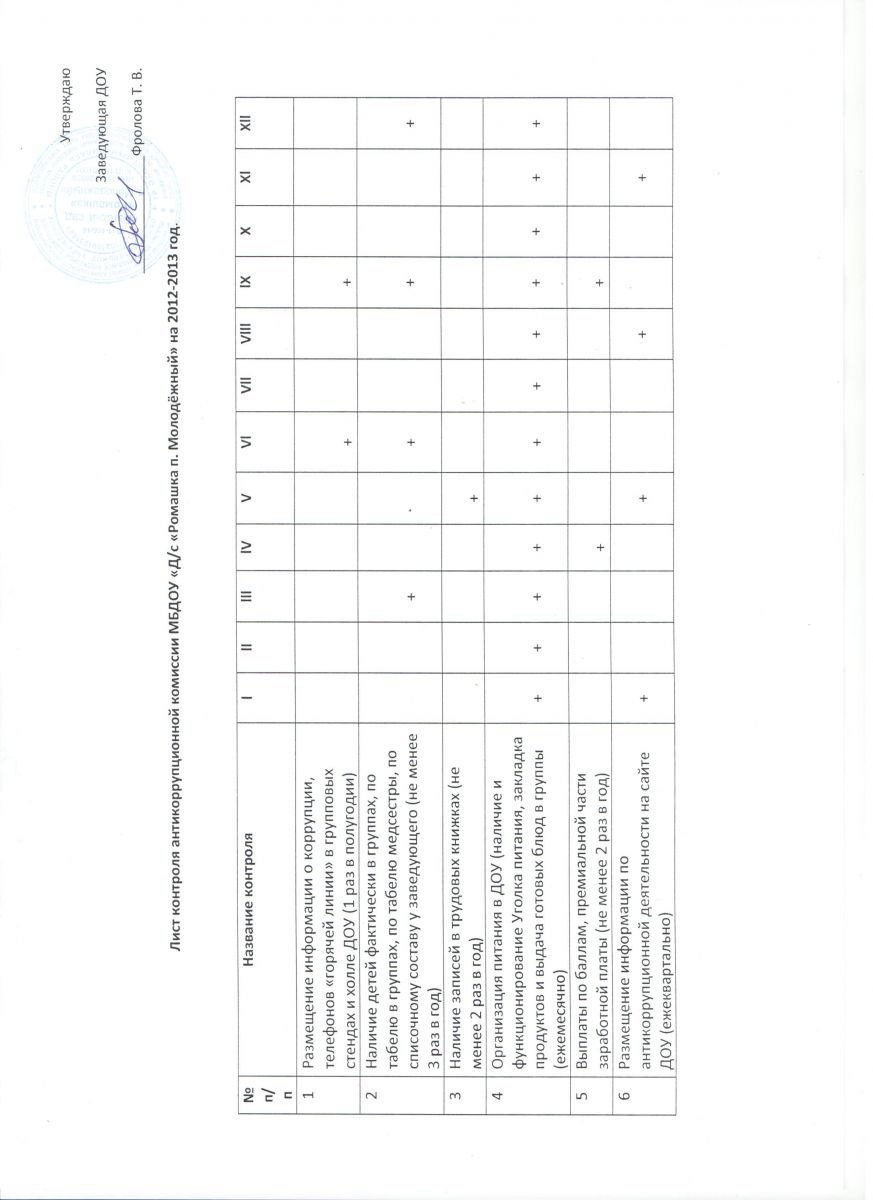 5. Лист контроля антикоррупционной комиссии на 2012-2013 учебный год