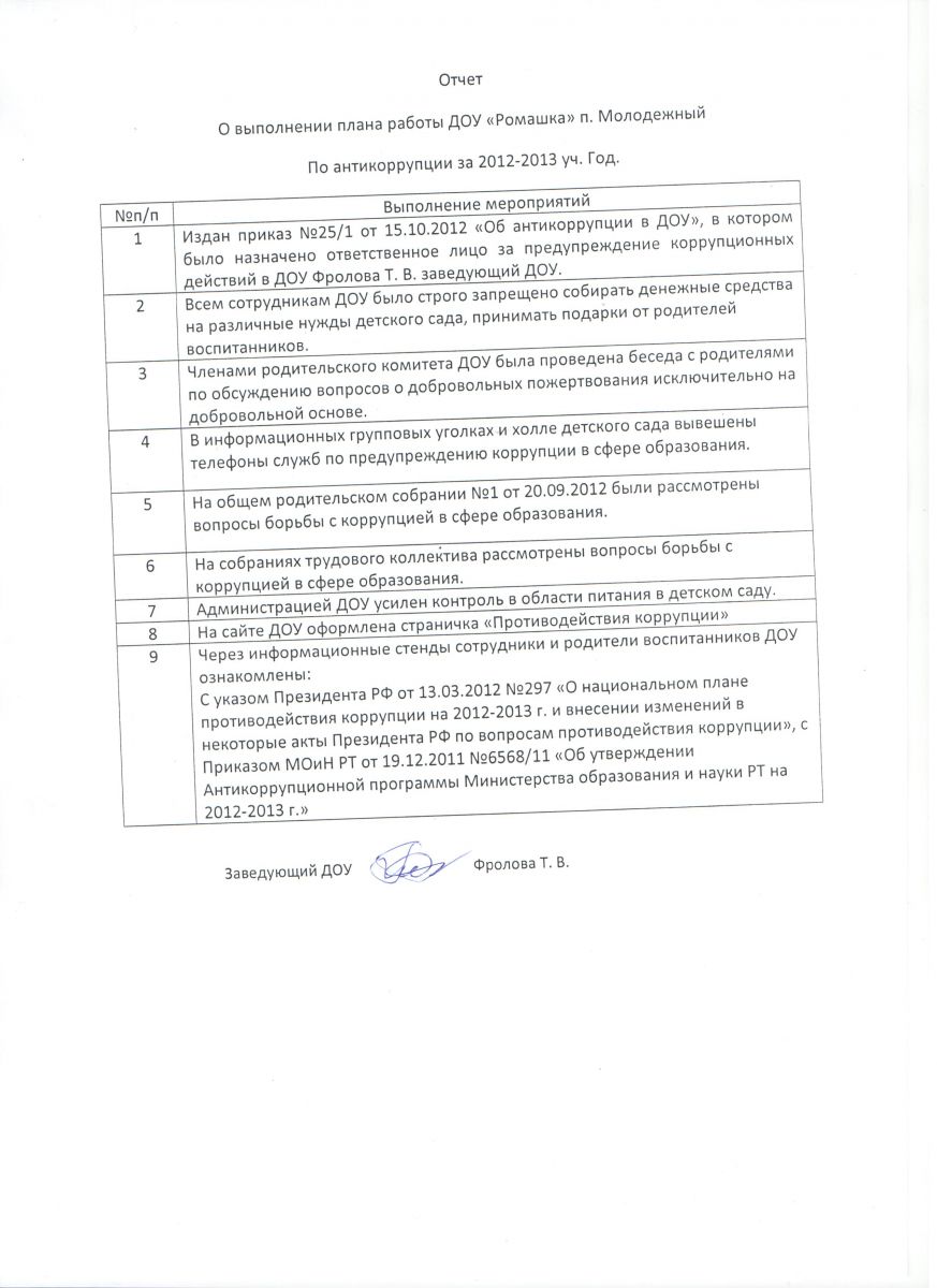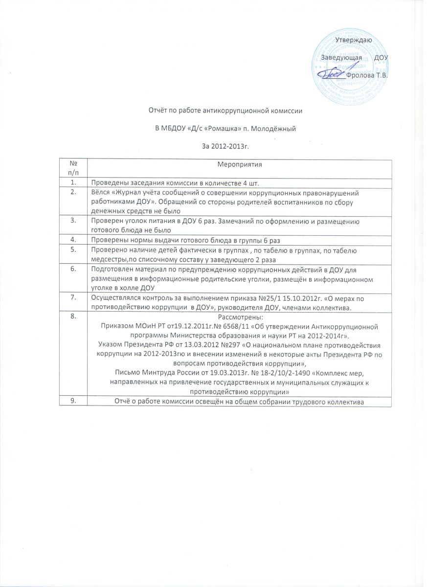 6. Отчет работы антикоррупционной комиссии ДОУ за 2012-2013 учебный год