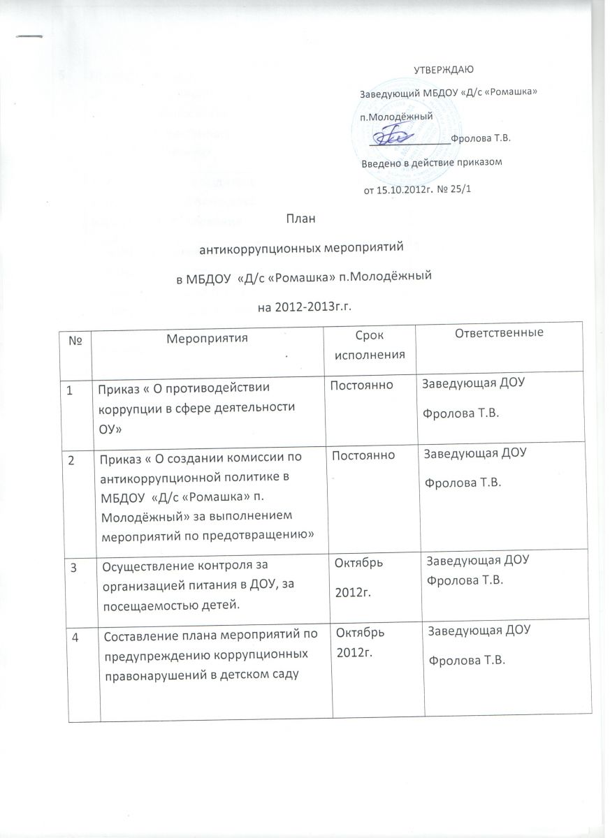 3. План работы ДОУ по антикоррупции на 2012-2013 учебный год( лист 1, лист 2)