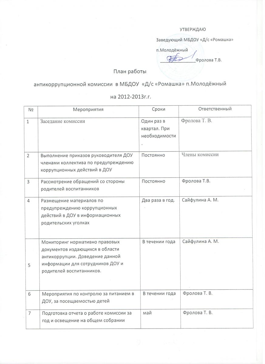 4. План работы антикоррупционной комиссии на 2012-2013 учебный год