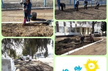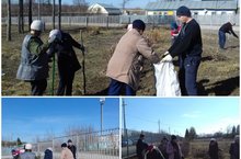 Сотрудники школы приводили в порядок территорию школы и села: собирали мусор, сгребали прошлогоднюю листву и траву. -