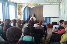 На лекции присутствовали учителя и учащиеся школы интерната. -