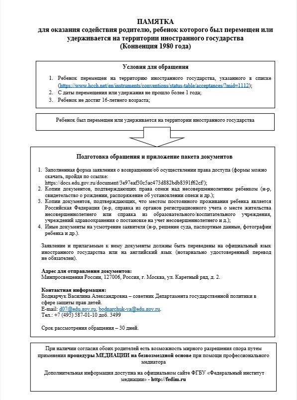 - Оказание содействия гражданам в случае международного похищения детей 07.08.2020