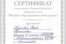 Ученица 11 класса Нуриева Резеда приняла участие в Всероссийском конкурсе эссе "Высшее образование в моих глазах" (Руководитель: учитель русского языка и литературы Исхакова А. А.)". 06.05.2019