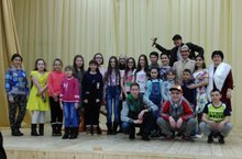Әлмәт драмма театры артистлары куйган "Диләфрүзгә дүрт кияү" спектаклен караганнан соң артистлар белән фотога төштек.