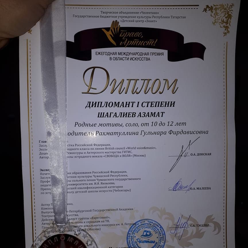 Ученик 4 класса Шагалиев Азамат стал дипломантом 1 степени в конкурсе "Браво, Артист". Руководитель: Рахматуллина Г. Ф. Поздравляем и желаем дальнейших побед!
