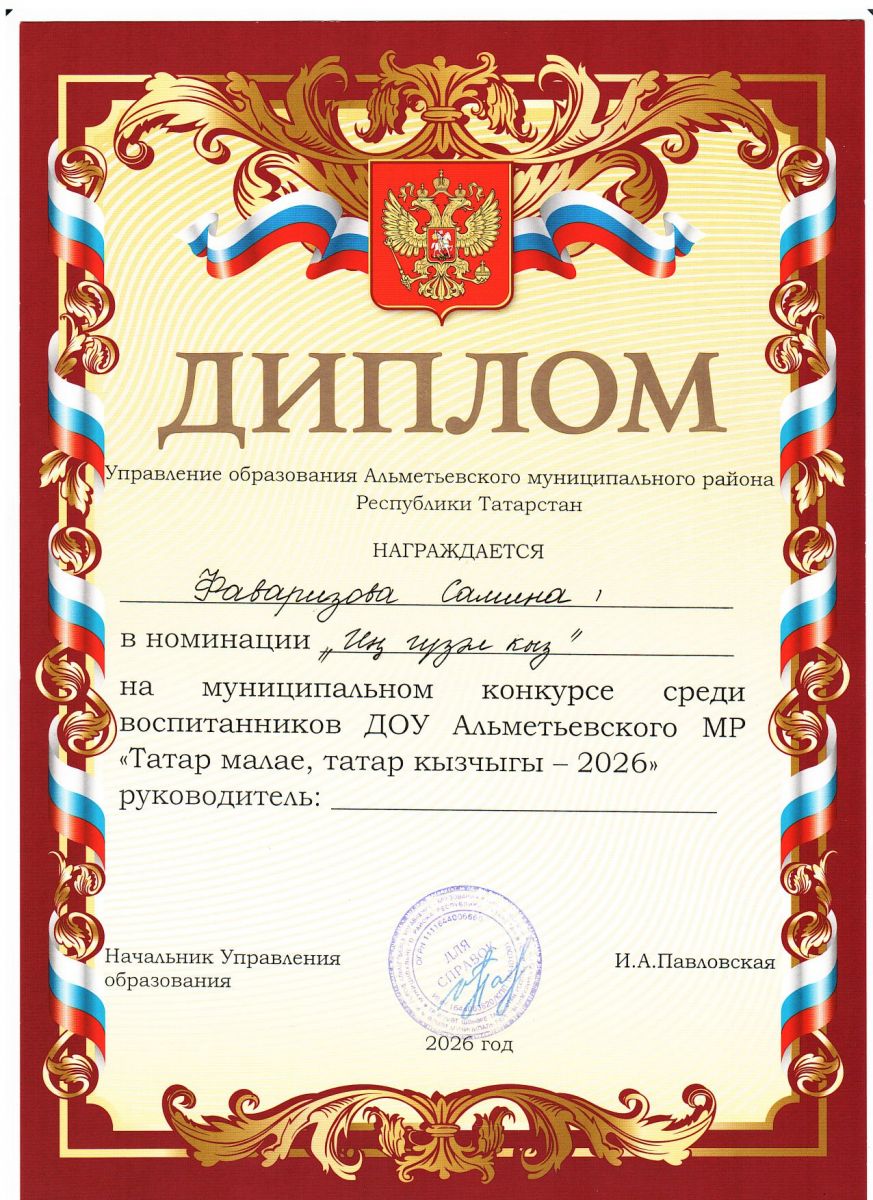 На базе МБДОУ "Д\с № 45 "Космос" города Альметьевск прошёл муниципальный конкурс «Татар малае, татар кызчыгы - 2026». Юные участники продемонстрировали свои знания татарского языка, а также блистали своими вокальными, танцевальными и артистическими талантами. Поздравляем воспитанницу подготовительной группы - Фаворизову Самину с победой в номинации «Ин гузэл кыз».Желаем ей дальнейших успехов! ФОТОГАЛЕРЕЯ -