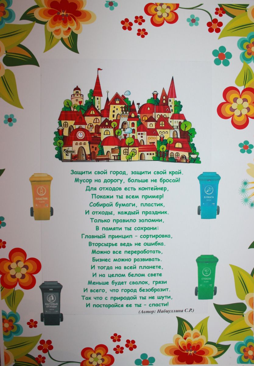 В детском саду с 25 апреля по 28 апреля в рамках санитарно - экологического двухмесячника прошла акция "Будет город чистым". В акции принимали участие дети, педагоги и родители. Были изготовлены плакаты, стенды по использованию контейнеров для раздельного сбора бытовых отходов. -