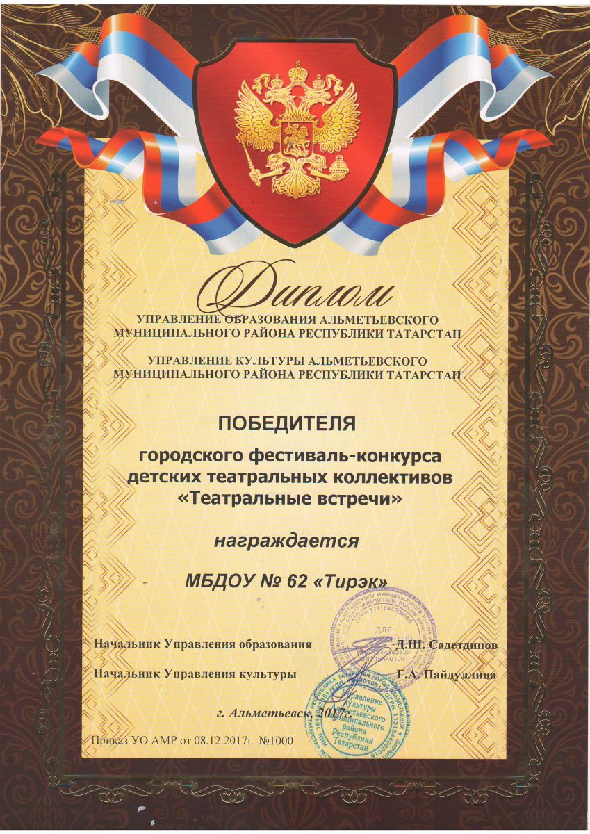 28 ноябрь көнне Р. Фәхретдин исемендәге татар гимназиясендә ТР Мәгариф һәм фән министрлыгы, "Татмедиа" АҖ "Салават күпере" журналы редакциясе" филиалы, "Сәхнә" сәнгать журналы "Сәйяр" республика балалар һәм яшүсмерләр театр фестивале зона лауреаты булып узды. Безнең балалар бакчасы балалар коллективы диплом белән бүләкләнде. Без аларны чын күңелдән котлыйбыз!!!