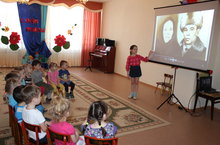 В детском саду организована фотовыставка из семейных альбомов и архивов. Дети старших групп рассказывали о своих прадедеушках и брабабушках (родствинниках), как они перенесли войну на своих плечах.