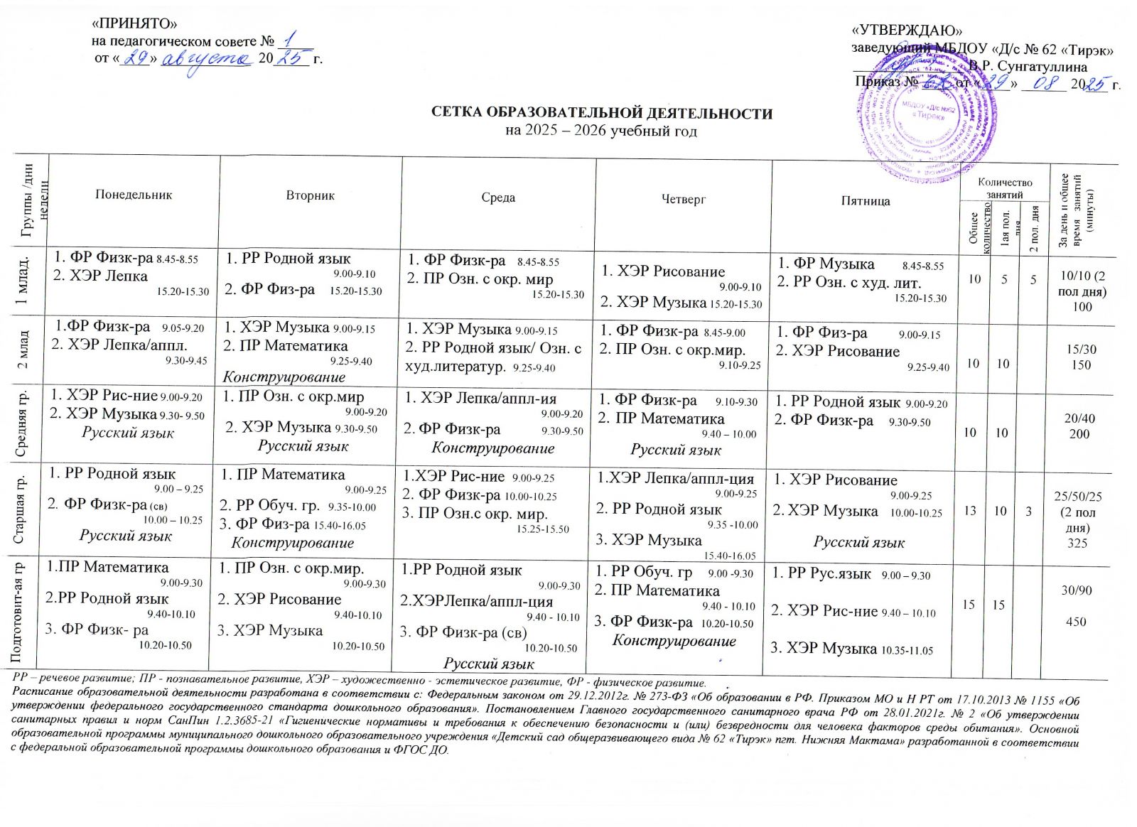 Сетка образовательной деятельности на 2025-2026 учебный год