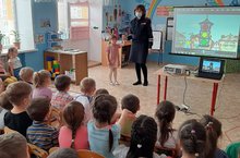 С целью воспитания благоразумных участников дорожного движения и профилактики дорожно- транспортного травматизма сегодня в детском саду была организована встреча с инспектором по профилактике БДД ГИБДД ОМВД Курамшиной И.И. Ребятам старшей и подготовительной группы инспектор рассказала о правильном и безопасном поведении на улицах города, объяснила почему дети до 7 лет должны ездить в автомобиле в детском кресле, а также для чего нужны светоотражающие элементы на одежде. Вместе с инспектором ребята вспомнили основные правила пешеходов, просмотрев серию сюжетов на образовательном портале "Сакла". В завершении встречи инспектор всем вручила памятки юных пешеходов, а так же ребята получили свежий выпуск всероссийской газеты "Добрая дорога детсва"
