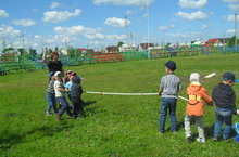 На празднике большое оживление вносят различного рода шуточные состязания: бег в мешке, бег с яйцами, перетягивание каната. Дети с удовольствием испольняли национальные танцы, пели песен , частушки . Детский сабантуя прошел, оживленно, весело.