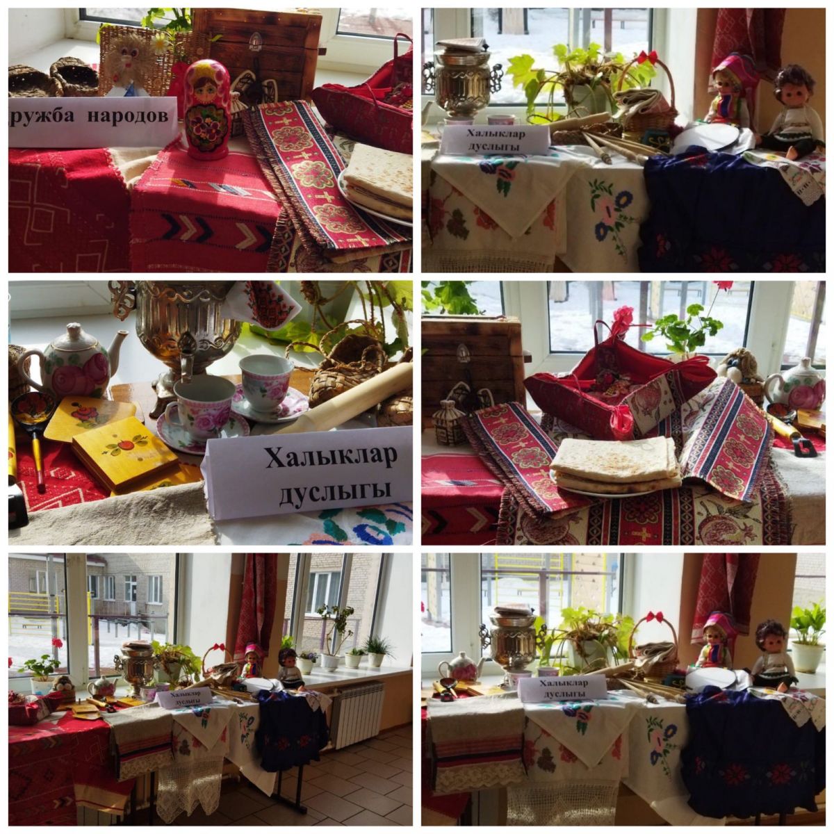 В нашей школе прошла выставка "Халыклар дуслыгы". Дети с удовольствием приняли в этом участие.Наша Родина уникальна. Исторически так сложилось, что в нашей республике рядом друг с другом проживают люди разных национальностей, разной культуры и разного вероисповедания. Учитывая интересы каждого народа, республика еще раз подтверждает свое толерантное отношение к разным национальностям. Недаром у Татарстана имеется собственная Конституция, в положении которой указано о свободном выборе языка.