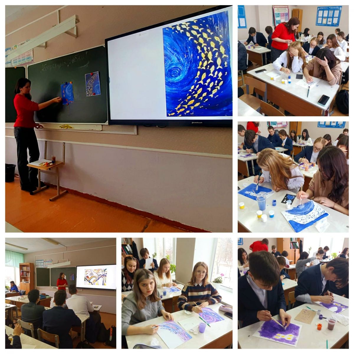 Ученики 9 Б класса посетили мастер-класс по Пушкинской карте. Тема "Абстракция" -