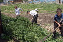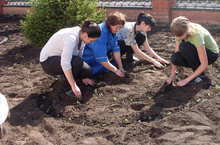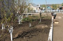 Учитель биологии Хайдарова Т.А. с 11 классом сажают цветы петуньи и астры