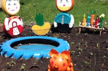 В этом году мы решили порадовать наших деток новыми поделками на участках! Был объявлен конкурс между группами. В этом году активное участие по благоустройству нашего участка к летнему периоду приняли не только весь коллектив детского сада, но и родители. С энтузиазмом и творчески они подошли к этому вопросу. Им очень хотелось, чтобы участки получились яркими, красочными. Все поделки выполнены аккуратно, можно сказать с любовью. Ведь они старались на радость детям! Дети просто в восторге от произошедших изменений. Это забавные персонажи из сказок были изготовлены из старых шин и бутылок. Деткам очень нравиться ходить в гости в к "Деду" и "Бабке", помочь им вытянуть репу, поиграть с "Ожившими" овощами, покататься на поезде. Особенное признание у детей получила "Тропа здоровья", где можно пройти по волшебному мостику, попрыгать по "неизведанным следам" и ополоснуть ножки в "чудо-бассейне".