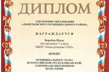 Боробов Илья, ученик 7 класса нашей школы стал призером муниципального этапа Всероссийской олимпиады школьников
