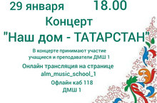 29 января в ДМШ №1 состоялся концерт "Наш дом-Татарстан". Концерт стал открытием цикла мероприятий приуроченных "Году родных языков и дружбы народов". В концерте приняли участие учащиеся и преподаватели ДМШ №1. Мероприятие прошло в двух форматах онлайн и офлайн. Запись прямого эфира с концерта можно посмотреть в инстаграмм на аккаунте нашей школы @alm_music_school_1