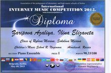 Наш фортепианный дуэт в составе Зариповой Азалии и Ильиной Елизаветы (преподаватели Рыбина М.В., Соколова М.Л.) занял 1 место.