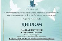 Поздравляем Самигуллину Анастасию и её педагога Иголкину Дарью Дмитриевну с победой! Выражаем благодарность за большой личный вклад в развитие культуры и искусства, за высокие достижения в педагогической деятельности.