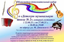 Дополнительный набор в «Детскую музыкальную школу № 2» осуществляется