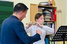 11.10.2025г. В АМК провёл мастер-класс Заслуженный артист РТ, солист оркестра Оперного театра им. М. Джалиля Владислав Захаров (флейта) с учащейся нашей школы Спиридоновой Полиной. Преподаватель Аксёнов Р.А.