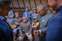 Образцовый детский этно-музыкальный коллектив «Карлыгач» на встрече Раиса РТ Р.Н. Минниханова в честь празднования Дня работников нефтяной и газовой промышленности.