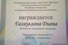 19 февраля в г. Набережные Челны состоялся открытый региональный конкурс татарского искусства "Мон чишмэсе" в котором приняла участие ученица ДМШ №2 Нуриахметова Динара класс преподавателя Галимовой Гульнары Ибрагимовны