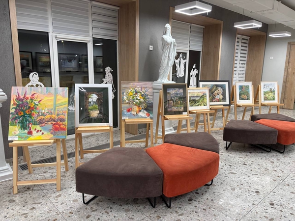 В фойе школы проходит передвижная выставка, организованная региональным представительством МЕЖДУНАРОДНЫЙ СОЮЗ ПЕДАГОГОВ-ХУДОЖНИКОВ в Республике Татарстан.