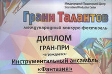 Инструментальный ансамбль "Фантазия" - Лауреат 3 степени;