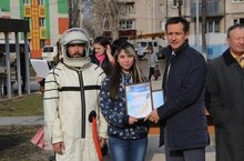12 апреля в Альметьевске в парке-космодроме «Шамсинур» состоялось праздничное мероприятие, посвященное Дню космонавтики и 55-й годовщине полета человека в космос.Одним из важных моментов стала церемония награждения победителей в конкурсах рисунков, сочинений, стихотворений и граффити. Айрат Хайруллин наградил победителей конкурсов по итогам декадника, посвященного Юрию Гагарину. В конкурсе рисунков " Гагарин в космосе" среди детских художественных школ, победила ученица нашей школы Петрова Аделина преподавателя Решетниковой И.В. Аделина награждена дипломом за 1 место и подарочным сертификатом.