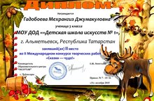 II Международный интернет конкурс творческих работ "Сказки-чудо" прошел в г. Чебоксары. Учащаяся ДШИ №1 Гадобоева М.Д. заняла 2 место. преподаватель - Чадаева С.Ю.
