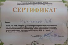 3 ноября преподаватель Исхакова Л.А. приняла участие в Республиканской научно - практической конференции, которая состоялась в АДМШ №1 имени Р.Нагимова.