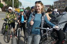 Наши студенты приветствуют участников велопарада в Альметьевске 29.05.2017
