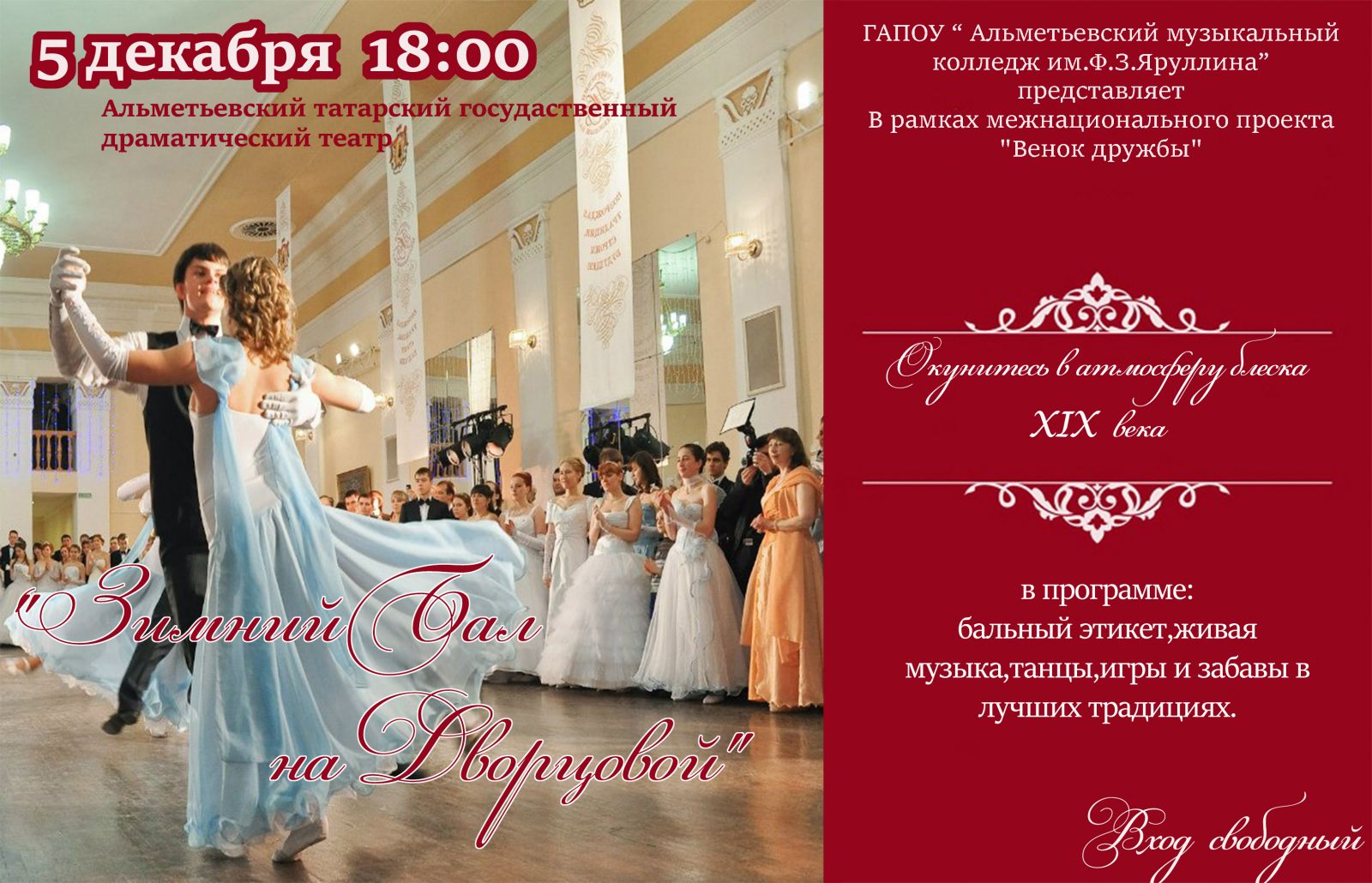 В первые в Альметьевском татарском драматическом театре, в рамках межнационального проекта "Венок дружбы"состоится "Зимний Бал на Дворцовой" под рук. М.В. Галкиной.