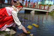 Сегодня, 16 мая, на каскаде прудов жители города увидели необычное красочное зрелище-это наши студенты «праздновали» День русской березы. Весело, с удовольствием, как в старину, играли в молодежные игры, а в завершении праздника пускали на воду венки-гадали на суженого. Если венок обратно приплывет к берегу, то не быть девушке замужем в этом году-надо ждать следующий.