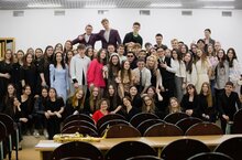 Первокурсники и классные руководители подготовили для выпускников программу с поздравлениями.